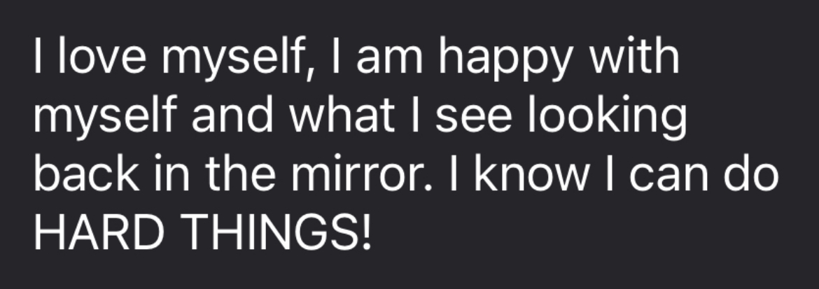 Through this journey, I learned to lean into discomfort instead of avoiding it, and in doing so, I found a deeper love and respect for myself. Today, I feel happy with who I am, proud of my growth, and confident in my ability to do hard things." - Vanessa